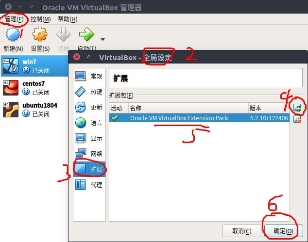 ## 下载增强工具并安装 `https://www.virtualbox.org/wiki/Downloads`  `https://download.virtualbox.org/virtualbox/5.2.10/Oracle_VM_VirtualBox_Extension_Pack-5.2.10.vbox-extpack`  ## 把当前用户添加到vboxusers组 ```bash sudo usermod -a -G vboxusers lypeng cat /etc/group | grep vbox vboxusers:x:129:lypeng ``` ## 重启Ubuntu 注意是Ubuntu,不是重启虚拟机 ## 打开虚拟机,在设备里面就可以识别出来了 加载U盘  ## 说明 当虚拟机关闭时(或者虚拟机断开与U盘的链接),物理机上才会出现U盘,否则U盘是被虚拟机占用的~