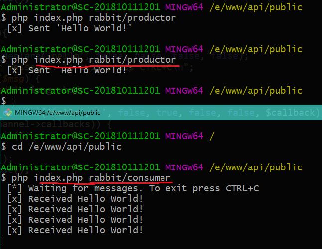 我是Windows中操作的,下载扩展安装,编写代码测试 ## 下载php_amqp扩展安装 1. 去php官网下载扩展 目前我用的php7.1.20_x64_nts版本! php_amqp.dll 扔到 D:\phpStudy\php\php-7.1.20-nts\ext目录下,rabbitmq.4.dll 扔到 D:\phpStudy\php\php-7.1.20-nts目录下 2. 重启查看是否安装成功 第一次重启没反应,退出再次重启好了,PHPinfo看到amqp信息了 [](/uploads/lypeng/20190409155329.jpg) ## 编写代码测试 productor.php ```php '127.0.0.1', 'port' => '5672', 'login' => 'admin', 'password' => 'admin', 'vhost'=>'/' ); $e_name = 'e_linvo'; //交换机名 //$q_name = 'q_linvo'; //无需队列名 $k_route = 'key_1'; //路由key //创建连接和channel $conn = new AMQPConnection($conn_args); if (!$conn->connect()) { die("Cannot connect to the broker!\n"); } $channel = new AMQPChannel($conn); //创建交换机对象 $ex = new AMQPExchange($channel); $ex->setName($e_name); date_default_timezone_set("Asia/Shanghai"); //发送消息 //$channel->startTransaction(); //开始事务 for($i=0; $i<5; ++$i){ sleep(1);//休眠1秒 //消息内容 $message = "TEST MESSAGE! $i ".date("h:i:sa"); echo "Send Message:".$ex->publish($message, $k_route)."\n"; } //$channel->commitTransaction(); //提交事务 $conn->disconnect(); ?> ``` consumer.php ```php '127.0.0.1', 'port' => '5672', 'login' => 'admin', 'password' => 'admin', 'vhost'=>'/' ); $e_name = 'e_linvo'; //交换机名 $q_name = 'q_linvo'; //队列名 $k_route = 'key_1'; //路由key //创建连接和channel $conn = new AMQPConnection($conn_args); if (!$conn->connect()) { die("Cannot connect to the broker!\n"); } $channel = new AMQPChannel($conn); //创建交换机 $ex = new AMQPExchange($channel); $ex->setName($e_name); $ex->setType(AMQP_EX_TYPE_DIRECT); //direct类型 $ex->setFlags(AMQP_DURABLE); //持久化 echo "Exchange Status:".$ex->declareExchange()."\n"; //创建队列 $q = new AMQPQueue($channel); $q->setName($q_name); $q->setFlags(AMQP_DURABLE); //持久化 echo "Message Total:".$q->declareQueue()."\n"; //绑定交换机与队列,并指定路由键 echo 'Queue Bind: '.$q->bind($e_name, $k_route)."\n"; //阻塞模式接收消息 echo "Message:\n"; while(True){ $q->consume('processMessage'); //$q->consume('processMessage', AMQP_AUTOACK); //自动ACK应答 } $conn->disconnect(); /** * 消费回调函数 * 处理消息 */ function processMessage($envelope, $queue) { $msg = $envelope->getBody(); echo $msg."\n"; //处理消息 $queue->ack($envelope->getDeliveryTag()); //手动发送ACK应答 } ?> ``` 先运行consumer.php,然后运行productor.php,看到效果了~ [](/uploads/lypeng/20190409163536.jpg) 参考:https://blog.csdn.net/xiaojiejie123s/article/details/77717469?_blank ## 使用composer类库操作 官网文档:https://www.rabbitmq.com/tutorials/tutorial-one-php.html?_blank ### 1. 安装类库 `composer require php-amqplib/php-amqplib` ### 2. 编写测试代码 ```php connection = new AMQPStreamConnection('localhost', 5672, 'admin', 'admin'); $this->channel = $this->connection->channel(); } public function productor(){ $this->channel->queue_declare('hello', false, false, false, false); $msg = new AMQPMessage('Hello World!'); $this->channel->basic_publish($msg, '', 'hello'); echo " [x] Sent 'Hello World!'\n"; $this->channel->close(); $this->connection->close(); exit(); } public function consumer(){ $this->channel->queue_declare('hello', false, false, false, false); echo " [*] Waiting for messages. To exit press CTRL+C\n"; $callback = function ($msg) { echo ' [x] Received ', $msg->body, "\n"; }; $this->channel->basic_consume('hello', '', false, true, false, false, $callback); while (count($this->channel->callbacks)) { $this->channel->wait(); } $this->channel->close(); $this->connection->close(); exit(); } } ``` ### 3. 运行测试 效果如下图: [](/uploads/lypeng/20190409173346.jpg) ### 深入了解RabbitMQ,可以查看这位同学的CSDN博客: https://blog.csdn.net/vbirdbest/article/category/7296570?_blank